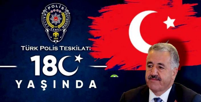 Türk Polis Teşkilatı, kuruluşunun 180. yıl dönümünü kutluyor. Bu anlamlı gün dolayısıyla 65. Hükümet Ulaştırma, Denizcilik ve Haberleşme Bakanı Ahmet Arslan da bir kutlama mesajı yayımladı.