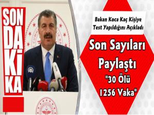 Toplam 20 Bin 345 Test Yapıldı, 30 Hasta Yaşamını Yitirdi, 1256 Pozitif Vaka Tespit Edildi