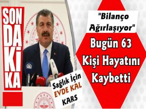 Bakanlıktan yapılan açıklamada; Bugün yapılan 14 Bin 396 test sonucuna göre 2148 yeni pozitif vakanın tespit edildiği, 63 kişininde yaşamını yitirdiği belirtildi.