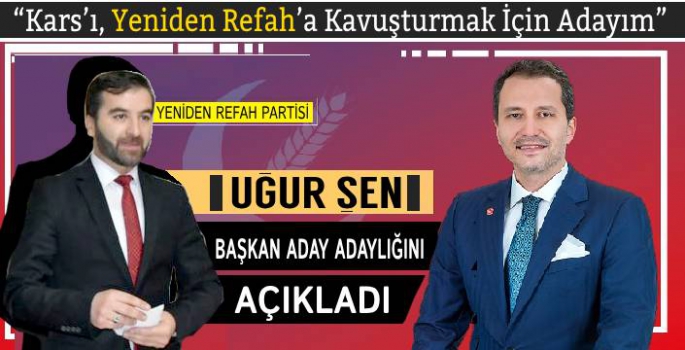 31 Mart 2024 tarihinde gerçekleştirilecek olan mahalli idareler seçimlerinde Kars Belediye Başkanlığı için aday adaylığı dilekçesini Yeniden Refah Partisi Kars İl Başkanı İbrahim Çelik’e sunan Uğur Şen, gazetecilere yaptığı ilk açıklamada “Milli Görüş Belediyecilik Anlayışıyla Karsımızı Buluşturmak İstiyoruz.” dedi.