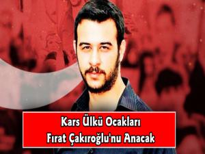 Kars Ülkü Ocakları, Ülkücü Şehit Fırat Yılmaz Çakıroğlunun şehadet yıl dönümü dolayısıyla 20 Şubat (Yarın) saat:11:30'da, öğle namazına müteakip Evliya Camisinde Mevlid-i Şerif okutulacak. Kars Ülkü Ocakları tarafından okutulacak Mevlid-i Şerif 'e tüm Karslılar davet edildi.
