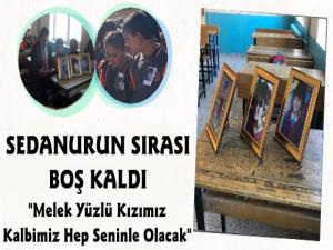 Sabah saatlerinde okula gelen diğer öğrenciler Sedanurun fotoğrafını göğüslerine takarak okula geldiler. Kağızman Paslı Köyü Esin Çağdaş İlkokulu 2. Sınıf öğrencisi Sedanurun sırası boş kalırken oturduğu sırasına çiçek koyarak fotoğrafını sırasının üzerine konuldu.