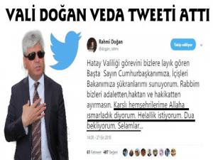 İşte Kars Valisi Rahmi Doğan'ın yayınladığı veda mesajı; "Hatay Valiliği görevini bizlere layık gören Başta Sayın Cumhurbaşkanımıza, İçişleri Bakanımıza şükranlarımı sunuyorum. Rabbim bizleri adaletten,haktan ve hakikatten ayırmasın. Karslı hemşehrilerime Allaha ısmarladık diyorum. Helallik istiyorum. Dua bekliyorum. Selamlar..."