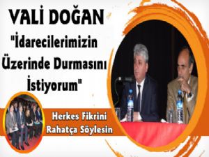 Vali Doğan, "Bir önceki toplantıda konuştuğumuz gibi bundan sonraki toplantılara da katılacağımı söylemiştim. Bu ayki toplantıya da katılalım ve sunumları görmek istedim. Hedefimiz başarıyı yakalamak. Öğrencilerimiz için tüm imkanlarımızı seferber edip onların en iyi şekilde eğitim almasını temin etmek. Onları hayata hazırlamak. Bu yönde Devletimizin, Milletimizin paralarını en iyi şekilde kullanabilmek, bir araya gelip bunları istişare edip sonrada ne yapmamız gerekenleri konuşmamız lazım. Okul bazında bu işi yapalım okullarımızın durumları nedir? Öğretmenlerimizin durumları nedir? Eksikleri nedir? Yürüyen bir projemiz var, o projedeki durum nedir? bu gibi konuları konuşarak fikir alışverişi yapacağız" diye konuştu.