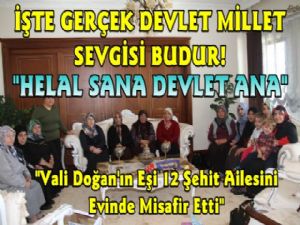 Çeşitli programlar vesilesiyle şehit yakınlarıyla bir araya gelen ve zaman zaman da şehit ailelerini evlerinde ziyaret eden hanımefendi, bu defa şehit yakınlarını Vali Konağında misafir etti. Şehit yakınlarının sorun ve isteklerini dinleyen hanımefendi, çeşitli isteklerde bulunan ailelerin isteklerini çözüm bulunması için ilgili kurumlara iletti. Ağırlamada şehit yakını çocuklara çeşitli hediyeler de verildi.