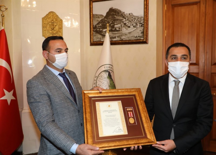 Vali Türker Öksüz, Malul Gazi Uğur Edizer’e madalyasını tevcih ettikten sonra gazetecilere açıklamalarda bulunarak, üstün görev anlayışı içerisinde feragat, başarı ve yaralılık dolu çalışmalarıyla Türkiye Cumhuriyeti ve Türk Milleti adına haklı gurur kaynağı olmasından dolayı bu madalyanın kendisine verildiğini söyledi.