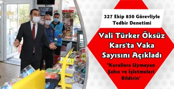 Kars Valisi Türker Öksüz yaptığı değerlendirmede; bugün il genelinde 327 ekip ve 850 görevli ile denetimlerin yapıldığını belirterek 23 Eylül 2020 tarihi itibari ile 4’ ü entübe olmak üzere 83 vatandaşımızın hastanelerde tedavi gördüğünü belirtti.