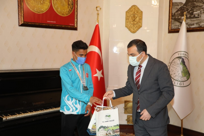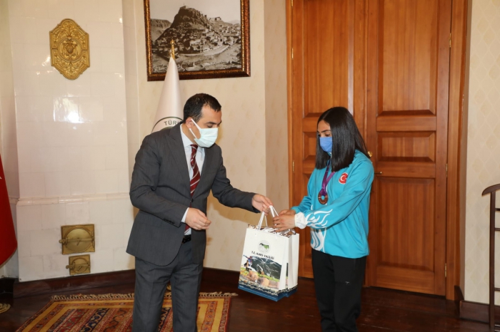 Kars Valisi Türker Öksüz tarafından bugün kabul edilen sporculara hediyeleri takdim edildi.