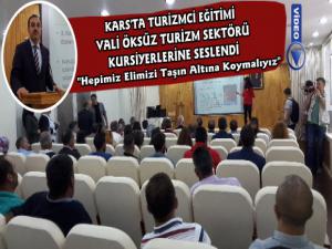 Programa katılan Kars Valisi Türker Öksüz burada kursiyerlere hitaben yaptığı konuşmada; Kars'ta her geçen gün ivmelendiği, önde gelen şehirlerden birisi olmuş durumda. Artık yılda 200 bin yerli ve yabancı turistin uğradığı bir kent haline geliyoruz. Elbette turizm sektörü şehrimizi ekonomik olarak besleyen, şehrimize yön veren sektörlerden birisi. Turizm alanında faaliyet gösteren tüm kamu ve özel sektörlerimiz, ulaşım , konaklama ve yeme içme gibi sektörlerimizin çalışanları yani kısaca bu alanda çalışan herkesin elini taşın altına koyması gerekir." dedi.