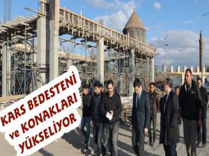 Kars Kalesi eteklerinde yapılan "Kars Bedesteni ve Konakları" projesi inşaat çalışmaları Vali Öksüz tarafından incelendi.