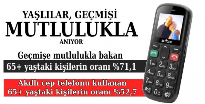 Türkiye İstatistik Kurumu, 65 yaş üstü vatandaşların akıllı cep telefonu kullanım yüzdesini ve geçmişe mutlulukla bakan 65 yaş üstü vatandaşların yüzdesini açıkladı.