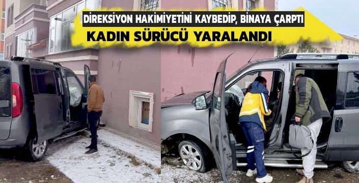 Kars'ta meydana gelen trafik kazasında bir araç, sürücüsünün kontrolü kaybetmesi sonucu kaldırıma, ardından bir tabelaya çarparak havalandı ve binaya vurdu.