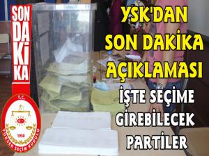 Bir önceki seçimde 11 parti seçime girebilirken bugün YSK tarafından alınan kararla Demokratik Sol Parti ve Türkiye Kominist Partisi eklenerek sayı 13'e ulaştı.