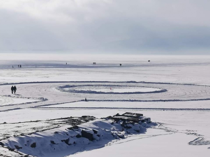 Buz üstünde otomobiller için buz üstünde karı temizleyerek pist açmaya çalışan bir köylüye ait traktör buzun kırılması sonrası suya düştü, gözden kayboldu.